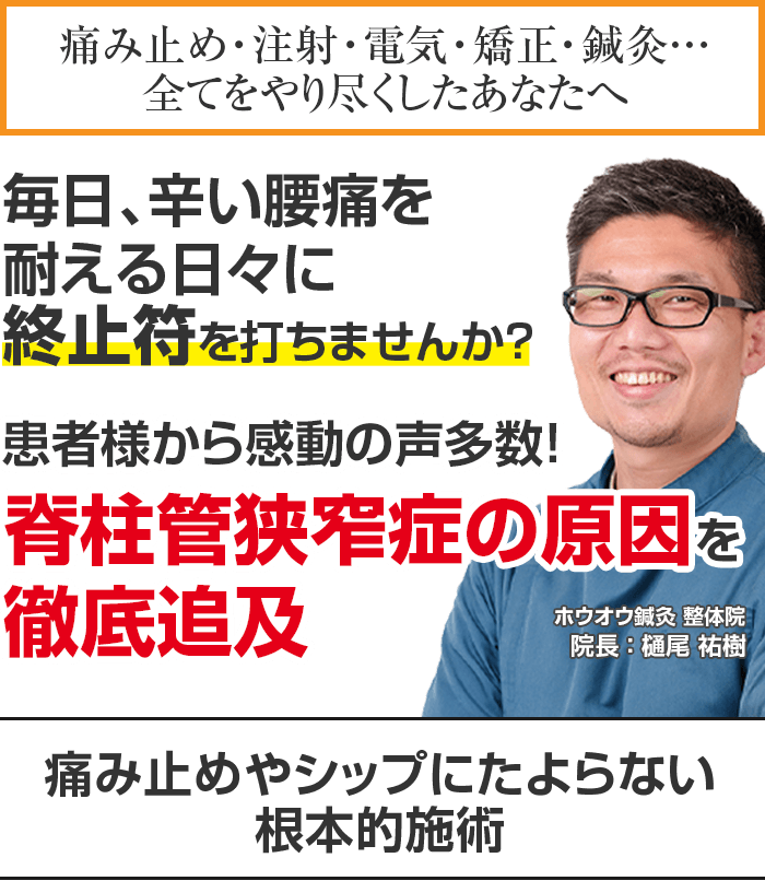 脊柱管狭窄症を根本改善したいなら西多摩郡日の出町のホウオウ鍼灸治療院